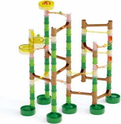 Kuličková dráha Migoga Jungle přináší dětem od 4 let zábavné učení formou hry. Barevné kuličky startují současně a poté se vydávají po různých cestách plných mostů, spirál a skluzavek inspirovaných tvary džungle. Děti mohou stavět podle návodů nebo tvořit zcela originální konstrukce.