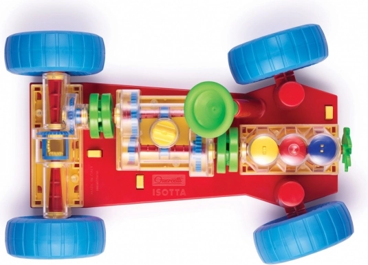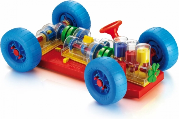 Důmyslná hračka, která přímo vybízí děti i jejich rodiče k zjištění, jak takové opravdové auto funguje. Všechny základní mechanické funkce jsou zde přesně reprodukovány. U motoru děti uvidí, jak pracují válce a kliková hřídel a jak jsou spojeny s převodovkou, která má funkční řazení o 3 polohách (neutrál, 1. a 2. stupeň). Diferenciál přenáší pohyb na zadní kola a umožňuje jejich otáčení nezávisle na sobě. Všechny mechanické části lze snadno připojit k podvozku a stejně tak je lze uvolnit speciálními odpruženými žlutými tlačítky. Volant funguje a umožňuje autu zatáčet nebo zajíždět do parkoviště. Děti mohou auto rovněž vpředu a vzadu zvednout pomocí speciálních vozíčků a otáčením kliky u předního z nich uvádět celý mechanismus do pohybu. Při řazení jednotlivých rychlostních stupňů uvidí, jak se bude měnit rychlost pohybu kol a válců. Při zařazení neutrálu si rovněž všimnou, jak se motor a diferenciál navzájem odpojí. Určeno dětem od 3 let. Hlavní vlastnosti: základní mechanické funkce jsou reprodukoványfunkční volant a mechanické částipro děti od 3 let
