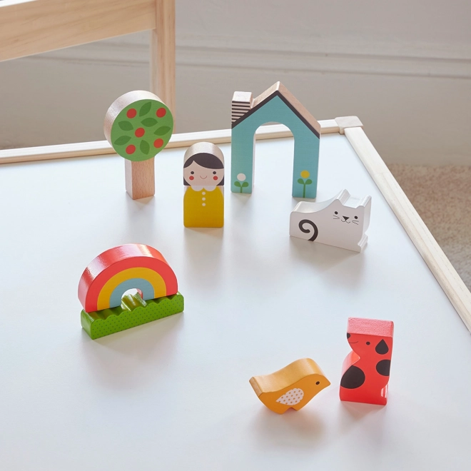 Tento barevný set umožňuje dětem tvořit domácí scény nebo stavět jako hlavolam. Dílky jsou navrženy tak, aby dobře padly do dětských rukou a byly vyrobeny ze 100% FSC® dřeva, které zaručuje šetrnost k přírodě.