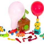 2 autíčka, 12 balonků, pumpa s motivem medvídka a další veselé komponenty pro soutěže a experimenty.