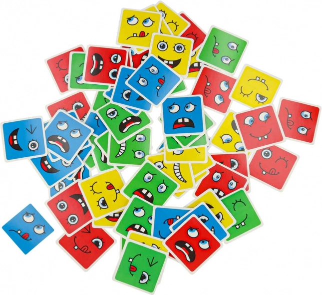 - 16 dřevěných kostiček ve 4 barvách, 64 karet s výrazy
