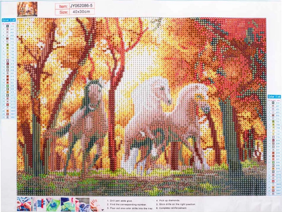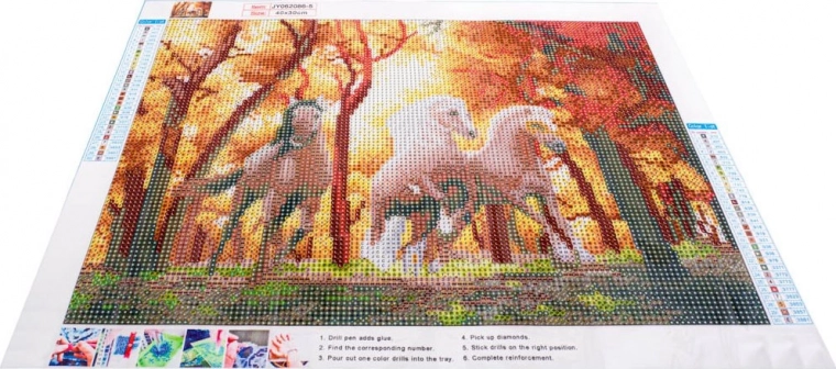 Konečný výsledek je působivý nejen pro toho, kdo se zabýval diamantovou malbou, ale také pro každého, kdo obraz vidí. Diamanty se jemně třpytí a působí úžasným dojmem. Hotový obraz lze zarámovat nebo pověsit bez rámu - jistě se stane jedinečnou dekorací interiéru.