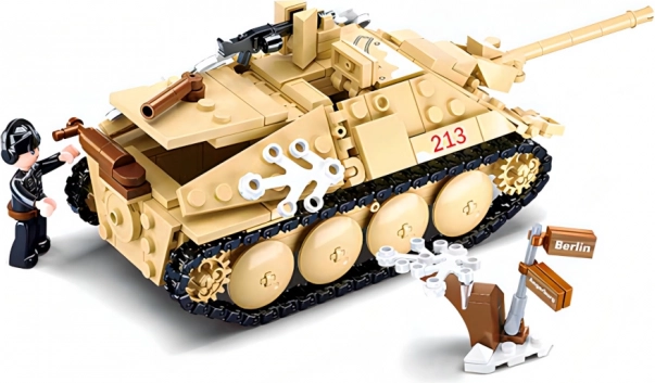 Vytvořte si atmosféru zimního bojiště s realistickým modelem stíhače tanků od značky Sluban. Stavebnice kombinuje pevnou konstrukci, otočnou věž a pohyblivé pásy, takže je ideální pro kreativní stavění i akční hraní. Dvě detailní figurky s otočnými a výkyvnými částmi těl oživí každou scénu.