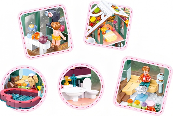 Postavte si útulnou zimní chatu a užijte si nekonečné zimní příběhy. Dvoupatrový domek s ložnicí, obývacím prostorem a venkovními prvky jako je skluzavka či vířivka podněcuje dětskou fantazii a společnou hru. Součástí jsou 4 detailní figurky s otočnými a výkyvnými částmi pro ještě realističtější scény.