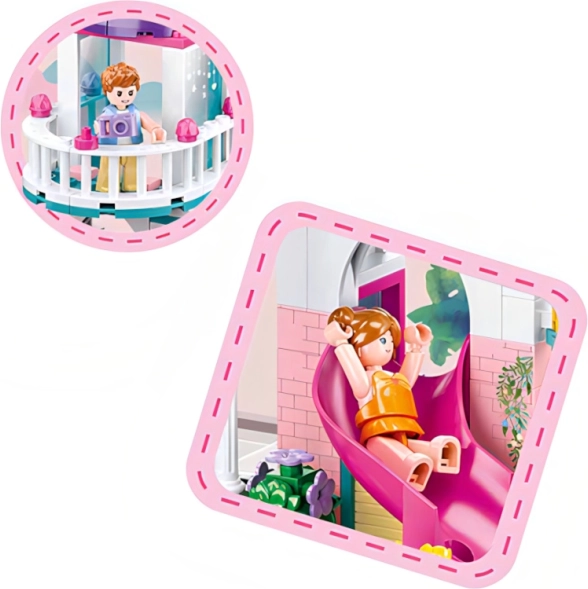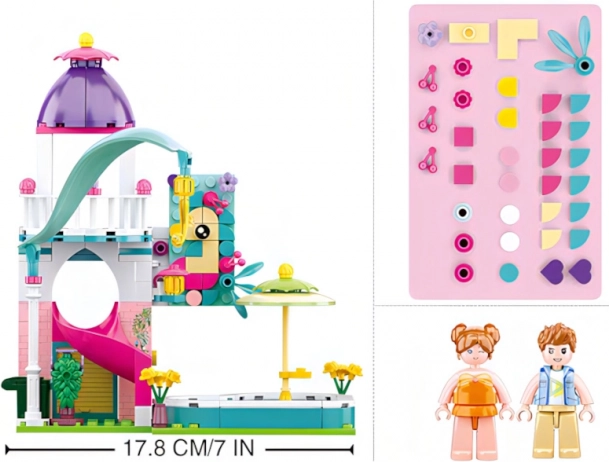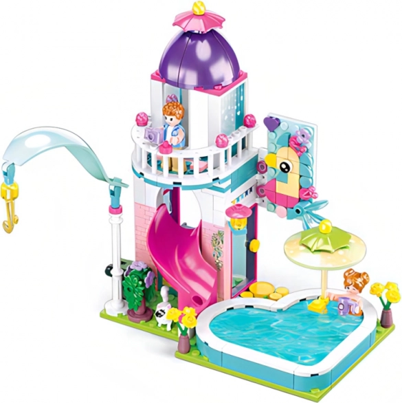 Sluban domek se skluzavkou do bazénu je zábavná a kreativní stavebnice, kterou lze snadno kombinovat s jinými stavebnicemi. Skvěle rozvíjí dětskou fantazii a motorické dovednosti.