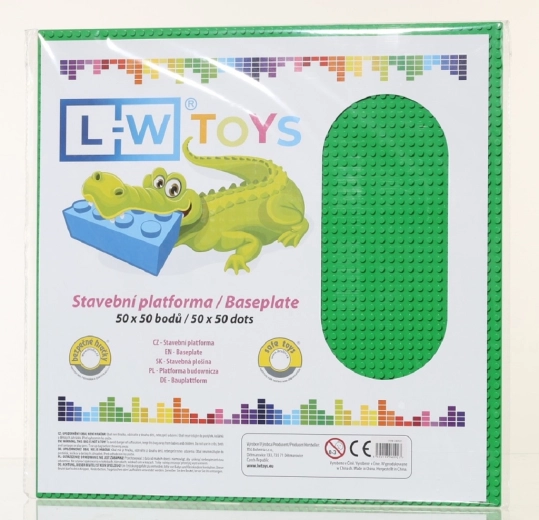Velká zelená podložka na stavění o rozměrech 50x50 bodů poskytne vašim stavebním projektům pevný základ. Kompatibilní s LEGO a L-W Toys, je to nezbytný doplněk pro každého malého stavitele.