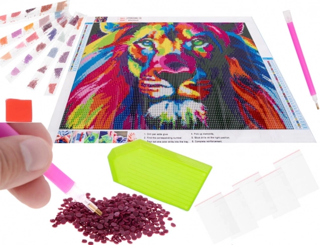 5D diamantová mozaika s motivem duhového lva je ideální volbou pro chvíle odpočinku i rozvoj jemné motoriky. Proces je nenáročný na dovednosti – podle barevného kódu jednoduše aplikujete kamínky na samolepicí plátno a sledujete, jak se obraz proměňuje v třpytivou mozaiku.