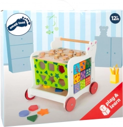 Šest dílků vkládačky, postranní bludiště a otáčivé kostky pomáhají dětem poznávat tvary a barvy, trénovat koordinaci oko–ruka a logické myšlení.
