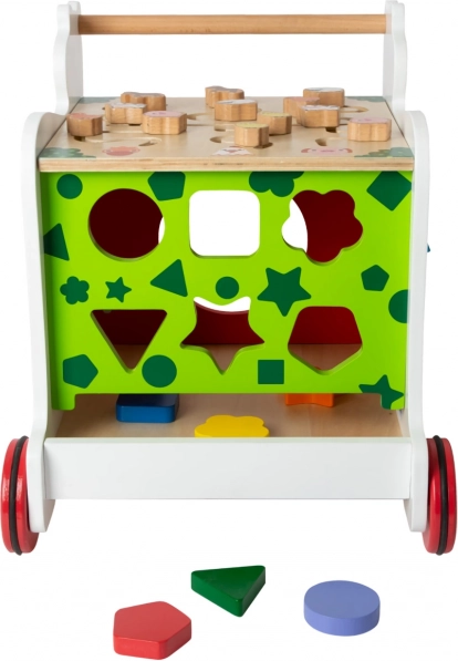 Objevujte svět krůček po krůčku. Toto odolné chodítko z kombinace překližky a masivního dřeva pomáhá dětem bezpečně trénovat rovnováhu a koordinaci, zatímco integrované aktivity – vkládačka se 6 dílky, bludiště a otáčivé kostky – posilují zrakové vnímání i logické myšlení. Tabulka pro kreslení křídou přidává kreativní rozměr učení a hry.