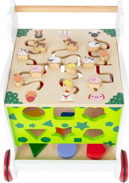 - vkládačka, bludiště, otáčivé kostky, tabulka na křídu, úložný prostor