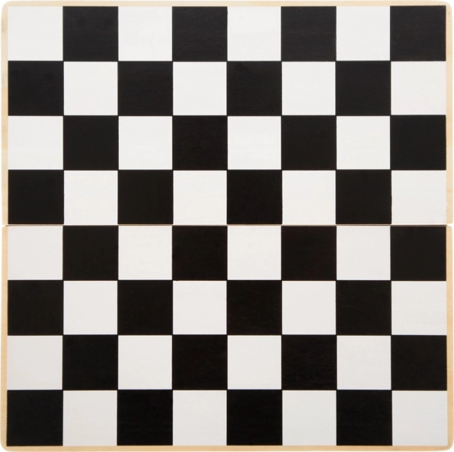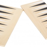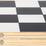 Hrací plocha pro šachy/dámu i vrhcáby na jediné desce. Dvě poloviny se spojují magnety – snadno se přenáší i skladuje.