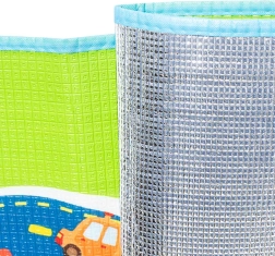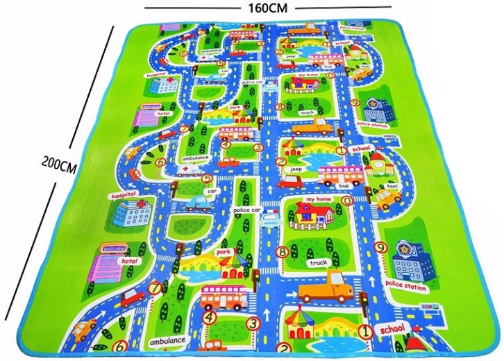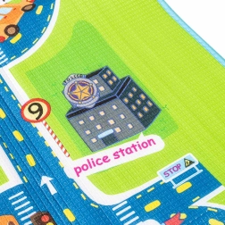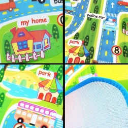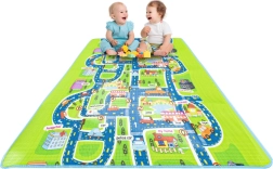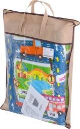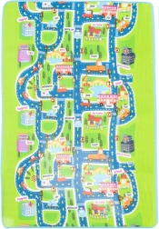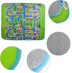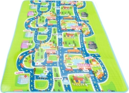 Tato velká skládací podložka s motivem silnic, budov a dopravních značek podporuje fantazii a rozvoj motoriky při hře s autíčky a figurkami. Měkká pěna EPE a tloušťka 5 mm zajišťují pohodlí při sezení i lezení a chrání před studenou podlahou.