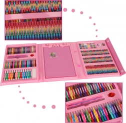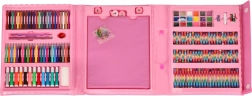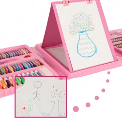 Tato růžová umělecká sada je ideální pro děti i dospělé, kteří chtějí rozvíjet svou kreativitu. Sada obsahuje širokou paletu barev a uměleckých potřeb, uspořádaných v přehledné skládací kazetě, kterou můžete snadno přenášet.