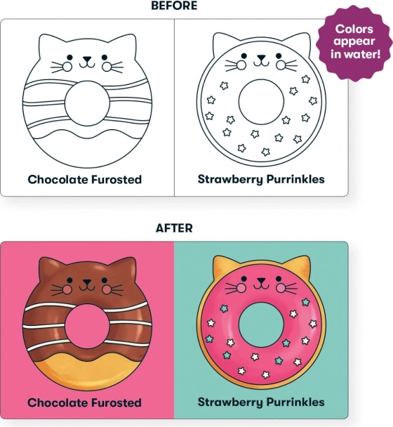 Koupání bude odteď radost. Nápaditá obrázková knížka se po ponoření do vody promění a aktivuje skryté barvy, které děti pobaví a motivují k objevování. Je lehká, měkká a bezpečná pro nejmenší.