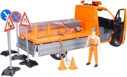 Součástí je figurka s pohyblivými končetinami, dopravní značky, kužely a nářadí pro realistické herní scénáře.