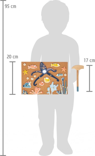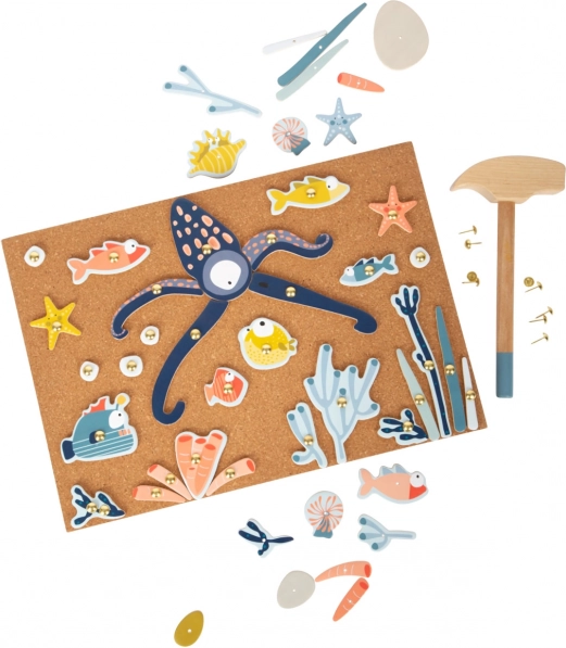 Přiložené kladívko a hřebíčky umožňují dětem rozvíjet své dovednosti a tvořit jedinečné mořské scény. Ideální volba pro podporu kreativity a představivosti.