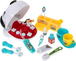 Sada zahrnuje kartáček na zuby, zrcátko, desku na příslušenství a další nástroje pro realistické hraní.
