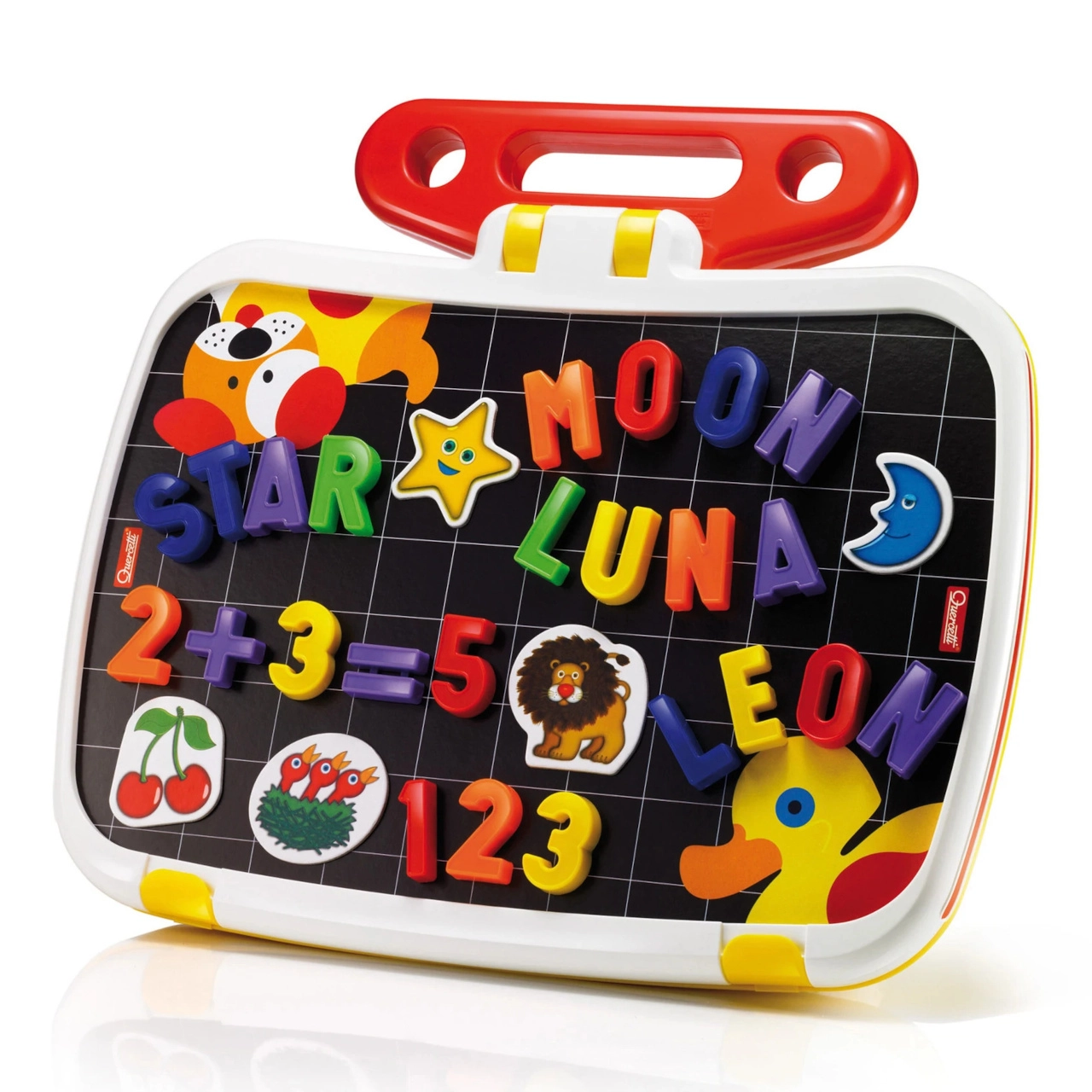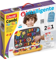 Učte se hravou formou s praktickou kufříkovou tabulkou QUERCETTI COMBI ABC 123. Děti mohou psát, kreslit, číst a počítat na oboustranné magnetické tabuli s robustním madlem. Sada obsahuje 120 dílů – plastová písmena, číslice, matematické symboly a barevné kartonové obrázky, které podporují jemnou motoriku, logické myšlení a kreativitu. Vše se bezpečně ukládá do kufříku, ideální i na cesty.