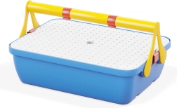 Všechny díly jsou bezpečně uložené v pevném kufříku. Perforované víko slouží jako stabilní podložka pro stavění doma i na cestách.