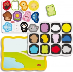 Obsahuje 12 pestrobarevných magnetických dílků, které pomáhají dětem učit se barvy a tvary zábavným způsobem.