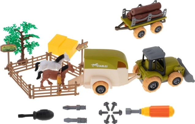 Obsahuje vše potřebné pro malou farmu - traktory, zvířata a nástroje nabízejí spoustu příležitostí pro interaktivní hru a propojení se světem zemědělství. Sada podporuje rozvoj motorických dovedností prostřednictvím interaktivního skládání a rozkládání hraček.