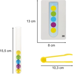 Objevte zábavný a interaktivní způsob, jak podpořit dovednosti vašeho dítěte díky tomuto velkému vzdělávacímu setu. Hra se zaměřuje na třídění kuliček do správných zkumavek pomocí rukou nebo přiložených kleštiček.