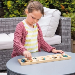 Mankala (známá také jako Kalaha) je elegantní strategická hra pro dva hráče, která v sobě spojuje jednoduchá pravidla a překvapivou hloubku. Tato dřevěná verze od Bigjigs Toys nabízí hladce opracovanou desku a barevné skleněné kamínky, které lákají ke hře i tréninku jemné motoriky.