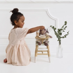 Péče o panenky a plyšáky nikdy nebyla tak zábavná a inspirativní. Le Toy Van pečovatelská sada nabízí kompletní výbavu pro malé pečovatele. Obsahuje textilní přebalovací tašku s dekorativním vzorem, dudlík, bryndák, plenku, talíř, lžíci, přesnídávku a lahvičku. Každý kus je vyroben s ohledem na udržitelnost a kvalitu, aby vydržel mnoho hodin her.