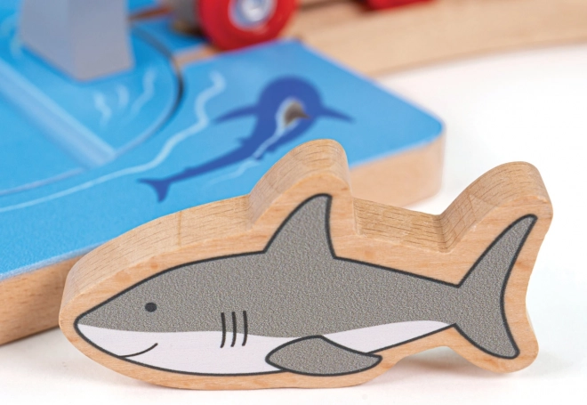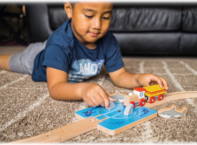 Vír se žraloky promění každou dřevěnou vláčkodráhu v napínavou oceánskou misi. Děti ovládají otočnou sekci tratě a rozhodují, zda vlak bezpečně projede kolem žraločích ploutví. Tento herní prvek přináší do hry napětí, příběhy i aktivní zapojení.