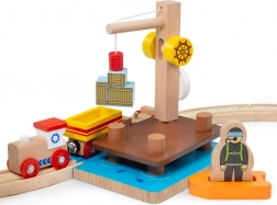 Tento přístavní set dodá vaší vláčkodráze realistickou atmosféru. Funkční jeřáb s magnetem bezpečně přenáší náklad mezi dokem, vagónky a člunem, zatímco figurka potápěče je připravena na každou záchrannou akci. Robustní dřevěné provedení zajišťuje dlouhou životnost a bezpečnou hru.