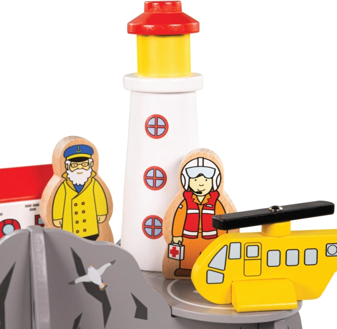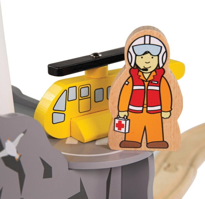 Obohaťte dětskou vláčkodráhu o pobřežní scenérii s majákem a heliportem. Tato dřevěná sada nabízí čtyřcestný tunel, maják, helikoptéru a 2 figurky pro nekonečné příběhy a záchranné mise. Vyniká robustním zpracováním, je kompatibilní s většinou dřevěných vláčkodrah a je vyrobena z odpovědně získaného dřeva s nezávadnými barvami.