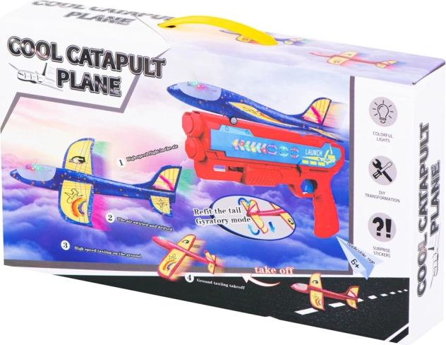 Letadlo je vyrobeno z pěnového polystyrenu a je velmi lehké, takže může letět vysoko a daleko. Hra s odpalovacím letadlem je skvělým způsobem, jak podpořit rozvoj manuální zručnosti, představivosti a reflexů dítěte. Je skvělou alternativou k počítačovým hrám, odvede pozornost dítěte od dlouhého sezení před telefonem nebo televizní obrazovkou a povzbudí ho k aktivnímu trávení času. Hračka jistě zaujme nejen děti, ale i dospělé. Originální tvar a syté barvy upoutají pozornost dítěte a povzbudí ho ke hře.