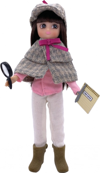 - Model detektivky: károvaný hnědo-zelený kabátek zdobený růžovou mašlí, čepici, růžovou košili, béžové kalhoty, hnědé boty, poznámkový blok, pero a nálepky s otisky prstů.