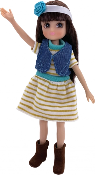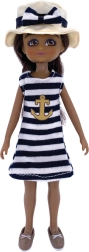 Doll with nautical-themed dress and matching accessories, ready for summer adventures.
