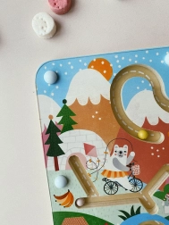 Magnetické bludiště od Vilac zavede děti do světa jemných ilustrací Michelle Carlslund. Pomocí magnetického pera mohou děti pomáhat zvířátkům dostat jejich kuličky na místo. Tato hračka je zábavná a bezpečná díky magnetickému principu.