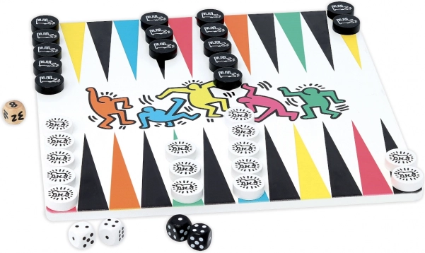 Tato elegantní dřevěná souprava přináší nadčasovou zábavu v moderním uměleckém kabátě. Originální kresby KEITH HARING dodávají hrám osobitý styl a z nich činí nejen skvělou volnočasovou aktivitu, ale také nepřehlédnutelný dekorativní prvek do dětského pokoje, herny či klubovny.