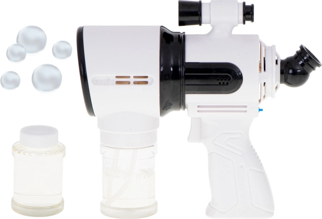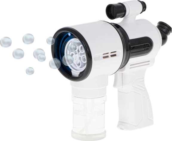 Tato bílá pistole na bubliny je ideální pro děti od 3 let i rodinné venkovní akce. Integrovaný větráček a systém s 5 kroužky zajišťují plynulé foukání a proud desítek až stovek bublinek na jedno stisknutí spouště. Pro větší zábavu nechybí LED podsvícení a zvuky, které lze jedním tlačítkem zapnout nebo vypnout.