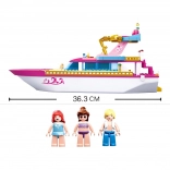 Tato barevná stavebnice luxusní jachty potěší všechny malé stavitele a stavitelky. Díky promyšleným detailům jako rybářský prut, surf nebo posezení na palubě je ideální pro imaginativní hry u moře. Figurky mají otáčivé a výkyvné části, což podporuje dynamické scény a zábavné příběhy.