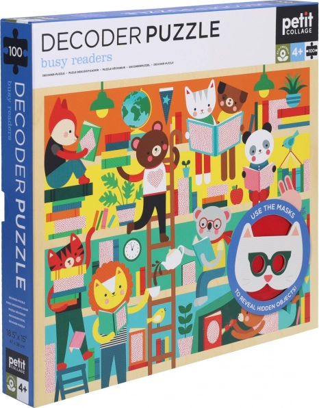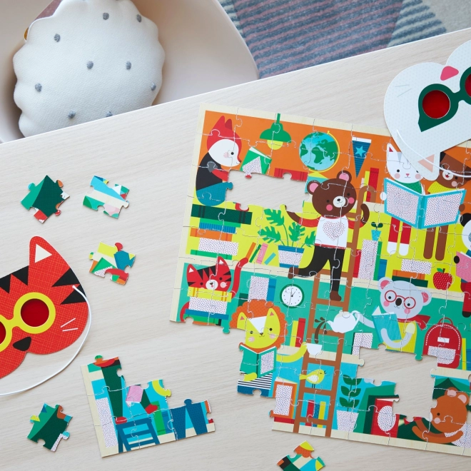 Pomocí dvou zvářecích 3D brýlí objevte skryté objekty v rušné scéně knihovny s tímto zábavným puzzle od Petit Collage.