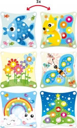 - Snadná manipulace – velké dílky pro malé dětské ruce, jasné ilustrace na oboustranných kartách.