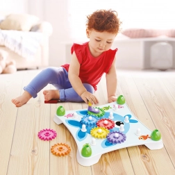 Díky kvalitnímu zpracování je hračka nerozbitná a bezpečná, ideální pro první experimenty s mechanikou. Barevné prvky lákají k objevování, procvičují koordinaci oko–ruka a posilují soustředění.