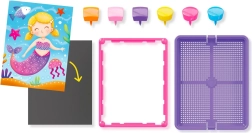 Set obsahuje vše potřebné: odolnou zapichovací podložku, rám pro pohodlné skládání a úložný košík, do kterého snadno uklidíte všech 300 pestrých kolíčků. Sada je ideální pro domácí tvoření i jako dárek pro malé umělce.