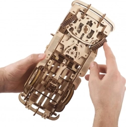 Na korbě odveze téměř půl kilogramu nákladu. Ideální pro zábavné testy výkonu a soutěže s dalšími modely UGEARS.