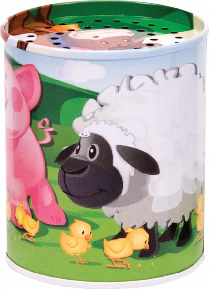 Schylling Plechovka se zvuky přináší zvuky farmy přímo do vašeho domova. S touto klasickou plechovou hračkou si děti užijí rozpoznávání zvuků a rozvoj koordinace rukou a očí.