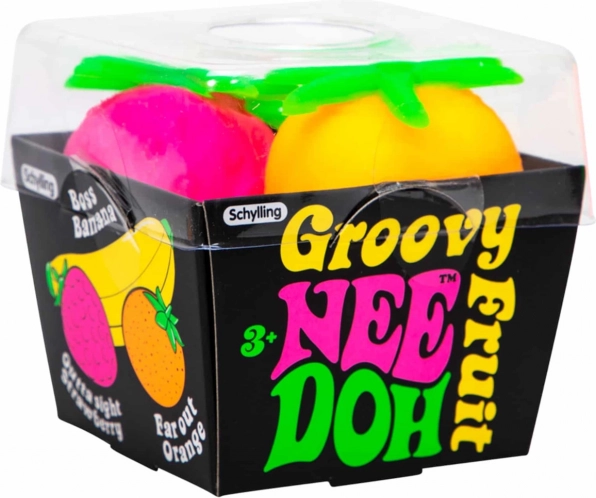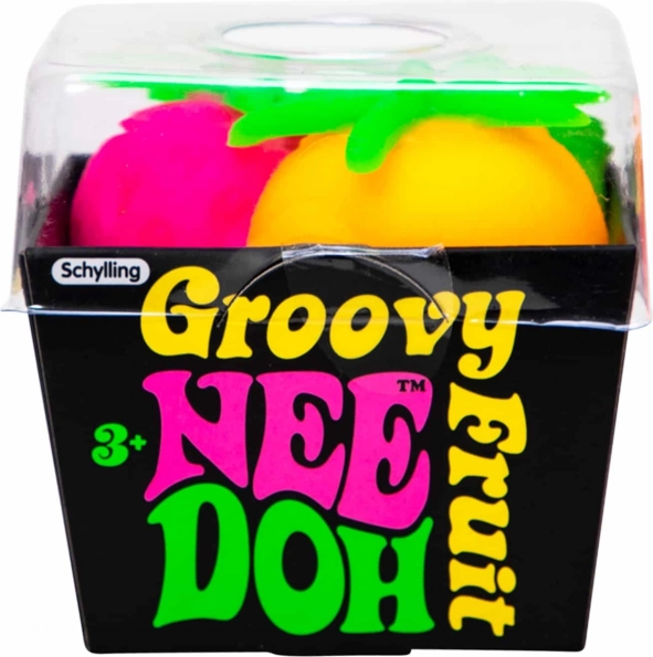 Schylling Groovy NeeDoh mačkací ovoce nabízí jedinečný způsob, jak si užít zábavu a zároveň najít klid. Tyto ovocné míčky jsou ideální pro hraní na cestách nebo jako prostředek úlevy od úzkosti. Vyrobeny z netoxického materiálu, který se vždy vrátí do původního tvaru. Umožňují mačkání, tahání a trhání, což podporuje soustředěnost a pozornost. Jsou vhodné pro děti a dospělé s ADD, ADHD, OCD, autismem a úzkostmi.