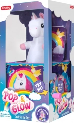 Objevte kouzelnou kombinaci klasické hrací skříňky a moderních efektů. Po otáčení klikou se rozezní oblíbená melodie a z barevné krabičky vyskočí plyšový jednorožec, který se rozzáří jemným vícebarevným světlem. Ideální jako dárek pro malé děti, které milují překvapení, hudbu a pohádkové postavičky.
