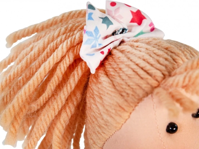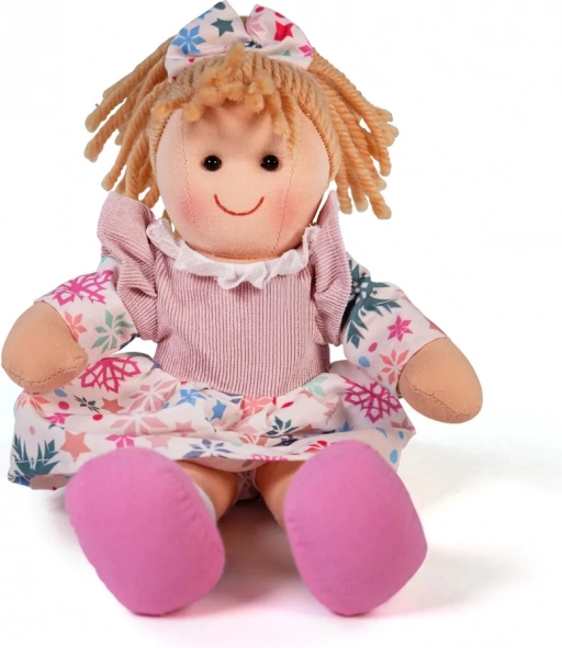Jemné textilie a přízové vlasy lákají k mazlení, zatímco barevné šatičky se vzorem hvězdiček podporují vnímání barev a rozvoj fantazie. Hra s panenkou rozvíjí jemnou motoriku, sociální dovednosti a schopnost pečovat a pomáhat.