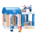 Tato detailně propracovaná dřevěná vláčkodráha je ideální pro malé inženýry, kteří milují vlaky a policejní dobrodružství. Obsahuje dráhu s mostem, atraktivní policejní stanicí a dalšími doplňky, včetně autíčka a helikoptéry.