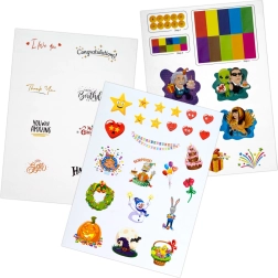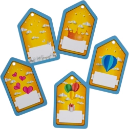 Tři archy samolepek a pět popisovatelných visaček dodají dárku osobitý nádech – od gratulací až po romantické vzkazy.