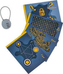 Proměňte předání dárku v nezapomenutelný zážitek. Tajemná krabička ESCAPEWELT je stylová skládačka, kterou po sestavení uzamknete třímístným kódem a řešiteli připravíte sérii logických indicií na čtyřech kartách. Díky barevným samolepkám, symbolům a směrovým nápovědám si sami nastavíte obtížnost i atmosféru hádanky.